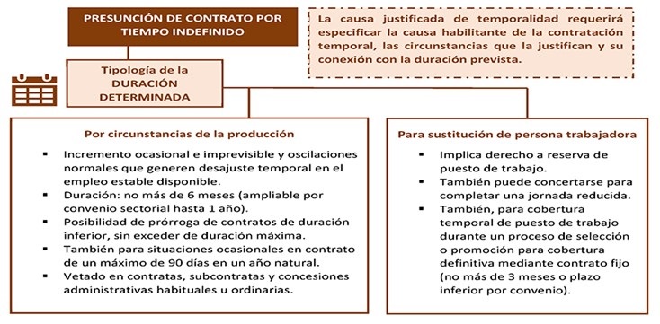 La restricción del nuevo artículo 15 del Estatuto de los Trabajadores lleva a la presunción del carácter indefinido de todos los contratos, de modo que el contrato de duración determinada solo puede celebrarse por circunstancias de la producción o por sustitución de la persona trabajadora.